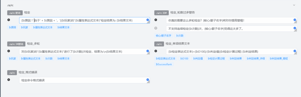 点击左侧自定义文案,此处以COC规则下的部分回复为例