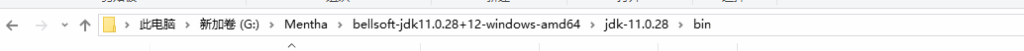 然后找到刚刚安装java的文件夹,找到一个bin文件夹,进入后单击下图的部分复制文件夹的位置
