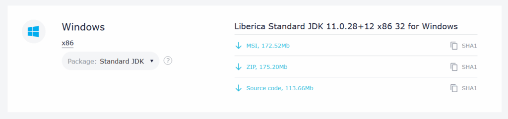 注意是Liberica Standard JDK 11.0.28+12 x86 32 for Windows,看好x86后面的数字哦