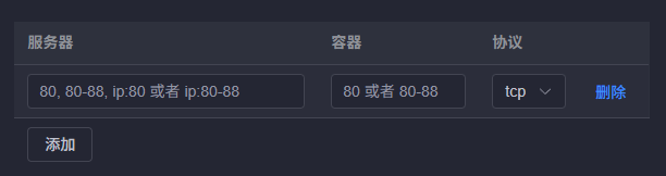 如果没有内容输出,则表明可以将Koishi服务开在5140端口上,否则要换一个端口,直到查询到它未被占用。以及同样的,不需要端口外部访问!假设5143可用,我们在端口这里左侧填5143,右侧填5140。