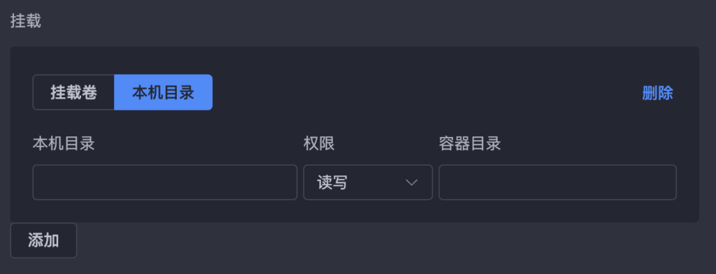 在挂载中填写我们需要持久化的内容。什么是持久化?在 Docker 里,“持久化”指的是让容器里的数据在 容器停止、删除或重新创建之后依然存在,而不是随着容器的生命周期一起消失。容器本质上是运行在 镜像的只读层 之上的一个 可写层(Container Layer)。这个可写层随容器存在,容器一旦删除,这层就会被清理,数据也就丢了。所以进行挂载的原因有两点:一个是如果不进行挂载,我们容器中所有东西会被塞到一个匿名卷中,完全无法直接修改其中的内容;另一个是如果删除或者重建容器后,不持久化的内容会全部丢失。