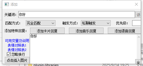 • 优先级:如果一次性能匹配很多个关键词,按照这里设定的优先级回复