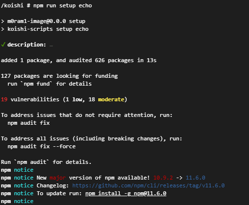 其中[name]替换成你想要的插件名称,比如说我们现在来实现上文的echo指令,就叫echo插件好了。我们输入 npm run setup echo 并回车
