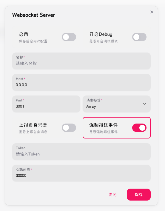 点击启用,填写一个喜欢的名称,Port填入3001,Token中的密码请妥善保管,然后点击保存。