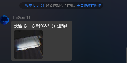 例子:当一个用户进群之后,发送一条欢迎消息,包含:欢迎 xxx 进群!+ 该用户的头像