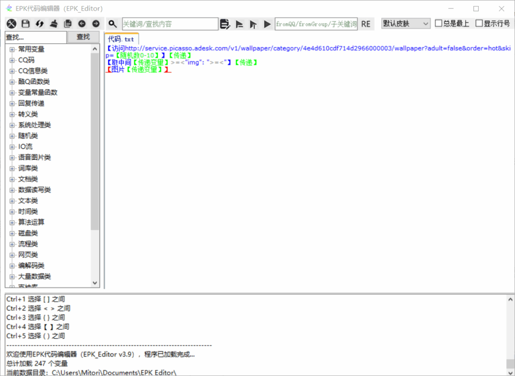 由于历史遗留问题,我们现在暂时(?)无法直接用EPK编辑器调试我们写完的回复,所以我们可以在EPK编辑器内写一些可能引起混淆的长代码,然后将代码内容复制回铃心自定义中