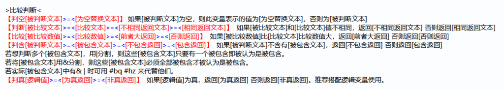 要实现“bot判断”这个动作,我们需要变量说明中比较判断一栏下的一些变量,它包含: