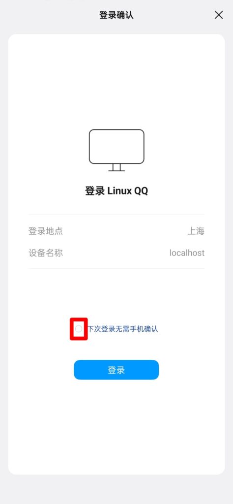 然后我们点击启动命令,会出现一个二维码,我们截图并且进入需要登录的Bot号上扫码,记得勾选下次登录无需手机确认,以便后续设置快捷登录: