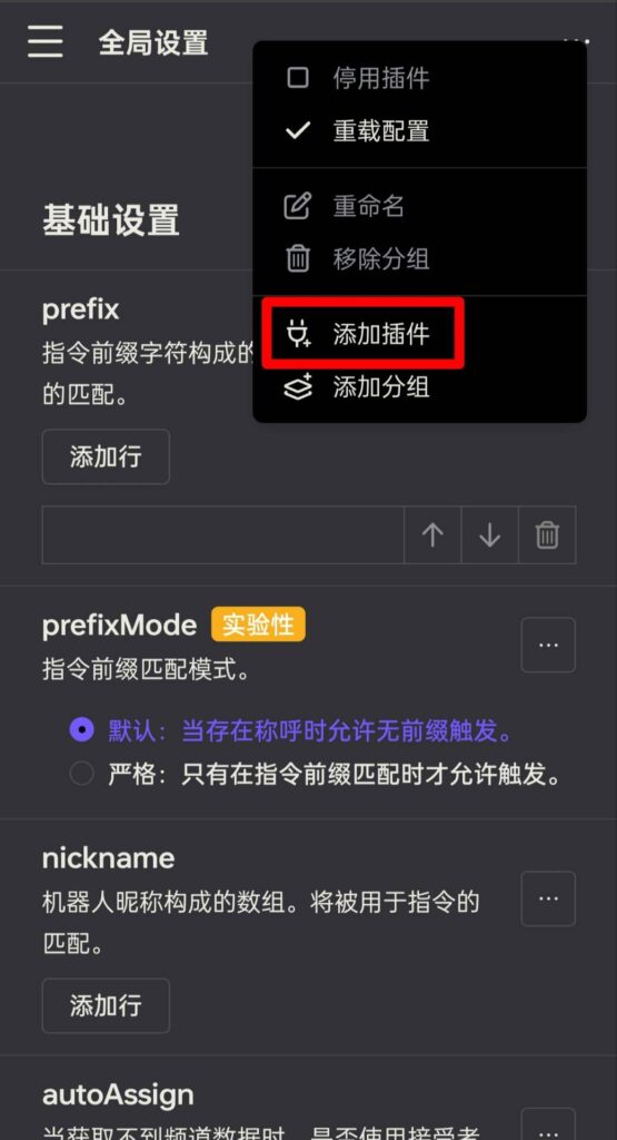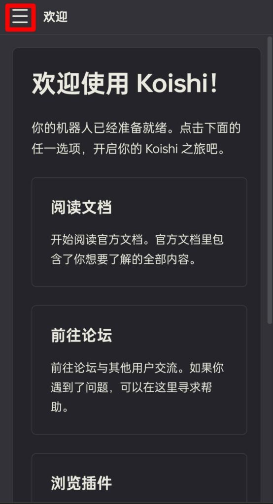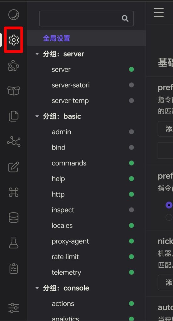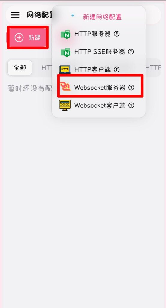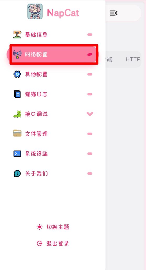 接下来创建服务器和Bot后端通信,点击左上角的菜单按钮,选择网络配置: